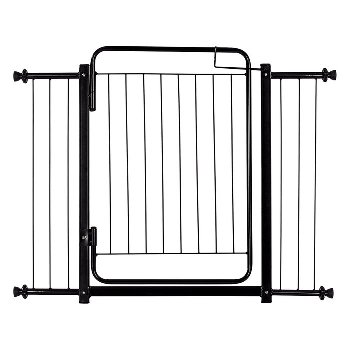 Grades para vãos de 104 cm à 109 cmNovo modelo:Percebemos que muitas grades de porta, de várias marcas diferentes, possuem resistência pequena e envergam sob pressão. Foi pensando nisso que lançamos nosso novo modelo com sistema de fixação dos extensores e design exclusivo, utilizando parafusos no lugar de encaixes no tubo. Com essa nova modificação as grades se tornaram bem mais firmes e seguras, oferecendo o que há de melhor em proteção para a sua casa.Nossas grades oferecem tranquilidade e praticidade no cuidado com o seu bebê. É ideal para cercar áreas internas ou externas, impedindo a passagem e protegendo quem você mais ama.Grades para cachorro: as grades podem ser usadas também no trato com seu pet, cercando passagens e mantendo sua casa sempre em ordem.Acabamento impecável com tratamento de fosfato e pintura epóxi a pó, garantindo a durabilidade das peças. Trava click e portão com abertura bidirecional, somado aos manípulos de borracha, oferecem facilidade na instalação e utilização do portão.Atente-se a medida de seu vão antes de efetuar a compra.ESSE MODELO NÃO PODE SER UTILIZADO SEM OS EXTENSORES.Imagens meramente ilustrativas.Características Gerais:- Estrutura tubular reforçada;- Pintura com tinta epóxi a pó NA COR BRANCA e PRETA- Instalação rápida e MUITO FÁCIL sem danos às paredes e sem furos;- Trava de segurança (evita que seu bebê ou seu pet abra com facilidade);- Abre para Ambos os Lados.FICHA TÉCNICAConteúdo: Grade + extensor + manípuloAltura total: 78 cmComprimento com extensor (manípulos instalados): Extensores: 1x 20 cm + 1x 20 cm Material: Metalon 30/20 e tubo 5/8Vão mais extenso na parte inferior do portão: 6,5 cmCaso haja qualquer problema com seu produto estamos dispostos a resolver da melhor maneira possível. Oferecemos três meses de garantia contra defeito de fabricação.