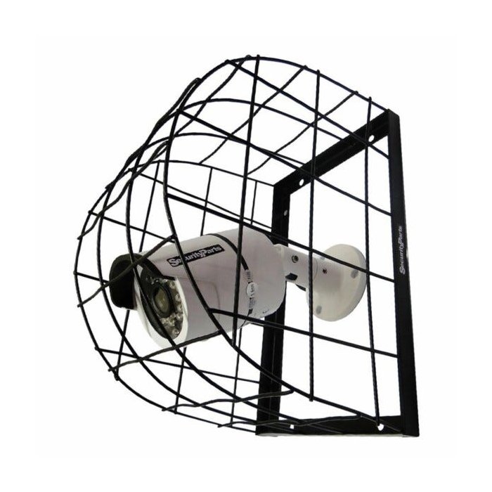 Esta grade de proteção tem a função de proteger câmeras de segurança contra roubos e vandalismos.