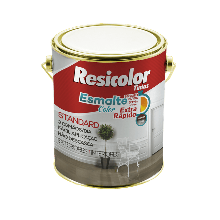 Esmalte Sintético Ouro Extra Rápido com acabamento fosco de uso em geral. Indicado para aplicação em metais e madeiras em exteriores e interiores.