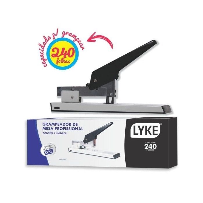 Grampeador 240 Folhas Profissional Lyke Cinza com Preto