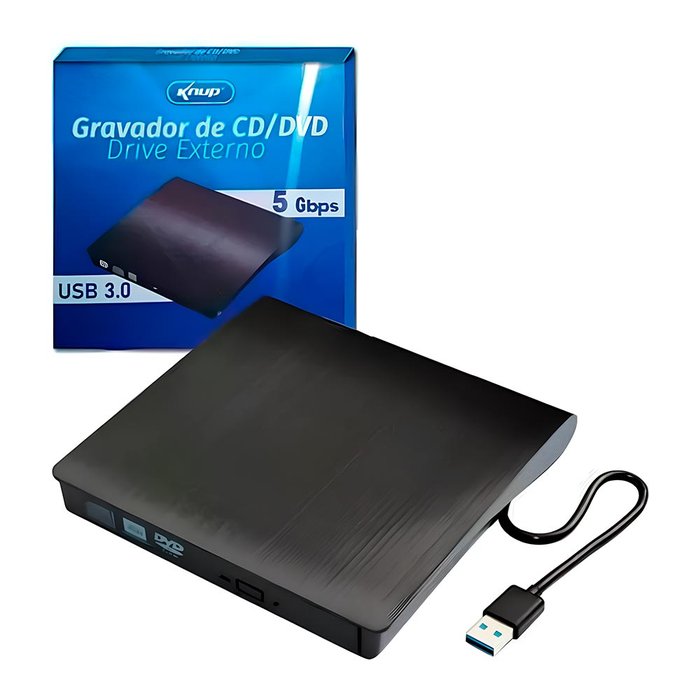 Gravador Leitor de DVD Externo USB 3.0 Portátil para PC e Notebook Knup Kp-le300
