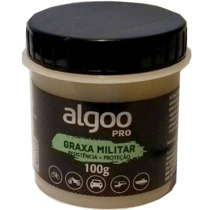 Graxa com multiuso para partes/componentes de bicicletas alta perfomance de Mtb, Speed/Tri, da fabricante brasileira Algoo PowerSports.Graxa Militar Algoo é um produto a base de óleos minerais e óleo de hidrocarboneto sintético que inibem oxidação e possuem boa resistência à água.É um produto ideal para lubrificação de rolamentos, cubo de roda, caixa de direção, movimento central e outras partes de bicicletas de alta performance expostas a altas temperaturas, choques/vibrações e carga, disponível em versão pote de100g.Algoo PowerSports é uma linha de produtos biodegradáveis totalmente desenvolvidos e fabricados no Brasil, feitos para bicicletas (a melhor opção para sua bike e para o meio ambiente!).Desenvolvidos com a mais moderna tecnologia, fruto de parcerias com laboratórios nacionais e internacionais, os produtos são feitos com ingredientes biodegradáveis, de manuseio seguro/prático e baixa toxicidade.Especificações e Atrativos: