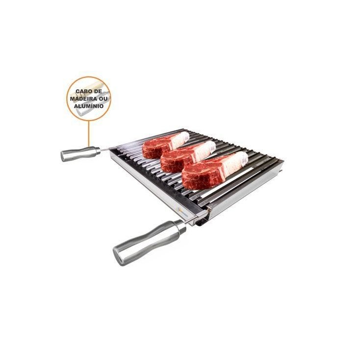 GRELHA PARRILHA ARGENTINA 60 X 40 cm (Medidas da área útil). Frente: 60cm Profundidade: 40cm Material: Aço inox 430 Cabo: Alumínio ATENÇÃO: Os cabos (12cm) NÃO são considerados na medida. As grelhas possuem ponteiras de 3cm, que NÃO são consideradas na medida. Margem de erro na produção de 0,1cm (1 milímetro). Tire suas duvidas logo a baixo no campo de perguntas. **FOTOS DO PRODUTO MERAMENTE ILUSTRATIVAS**
