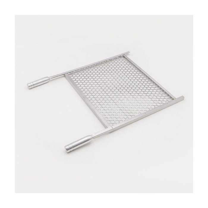 grelha de inox tela moeda sem emenda 35 cm de largura x 45 cm de profundidade, medidas de área de fogo feita tela moeda de 1,2mm de espessura, pratica, durável e de fácil limpeza.