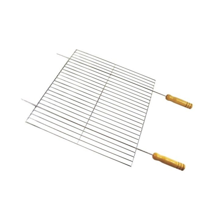 A grelha plana quadrada de aço galvanizado, permite que se trabalhe com vários tipos de carnes ao mesmo tempo, além de outros complementos como queijo provolone, pimentão, linguiça, tomates, cebola, morcilha e etc. Ela favorece as carnes sem osso, em detrimento das carnes com osso como a costela. Portanto as carnes mais indicadas para a grelha são a picanha, a maminha, o assado de tira (tiras muito finas de costela), linguiças, salsicháo, chuleta, vazio ou fraldinha e o filé mignon