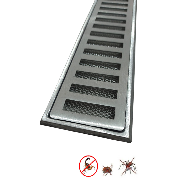 Grelha Pluvial 10x50 com Suporte e Tela Anti Insetos - Aluminio Fundido Escovado - Ficone Reis