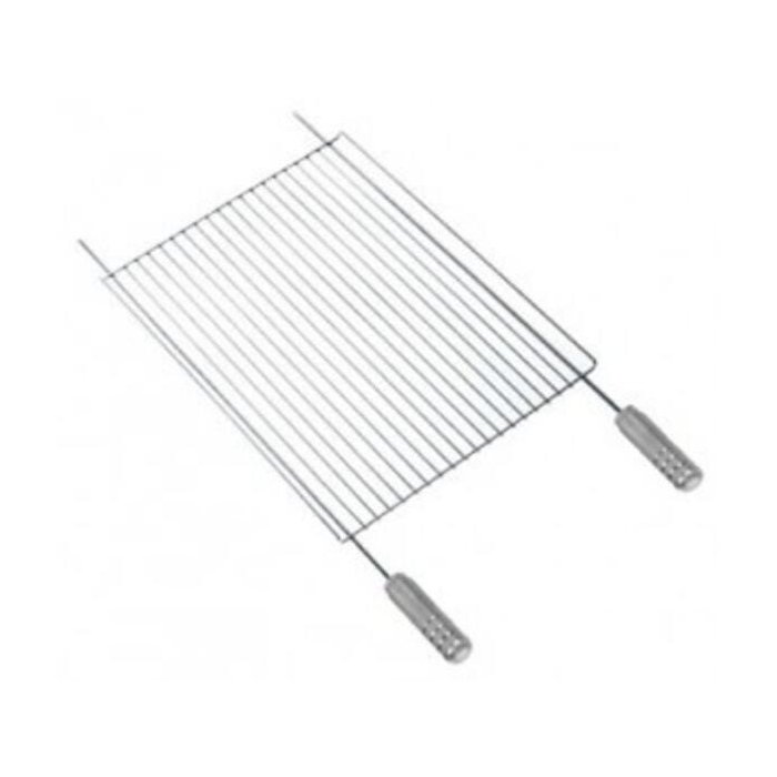 Grelha Tradicional de arames da linha Premium, com proteção lateral para grelhar ou deixar espetos de churrasco em descanso na parte superior do kit.