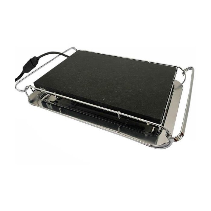 Grill Elétrico Grelha De Pedra Granito Ônix Chapa Elétrica Stone Grill 127 volts Cromado e onix