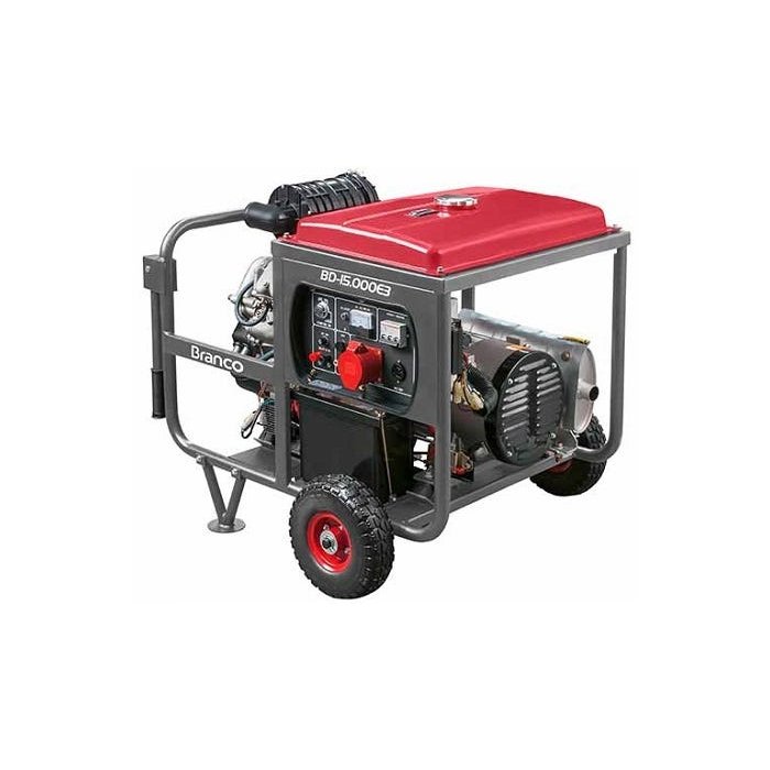GRUPO GERADOR BRANCO BD15.000E3 G2 14 KVA 220V Referência: 90313945 Modelo: BD15.000E3 G2 Uso: Profissional Marca:BRANCO País de origem: CHINA Potência: 13.2 KVA / 14 KVA Voltagem: 220V Acionamento: Diesel Tanque de Combustível: 25 Litros Dimensões CxLxA: 98x73x84 cm Peso: 220 Kg Notas:Diesel , refrigerado a ar , partida elétrica , trifásico , com avr , frequência 60 Hz , voltímetro , carregador de baterias 12volts , com rodas , 208kg Obs. Acompanha Bateria 12 volts.