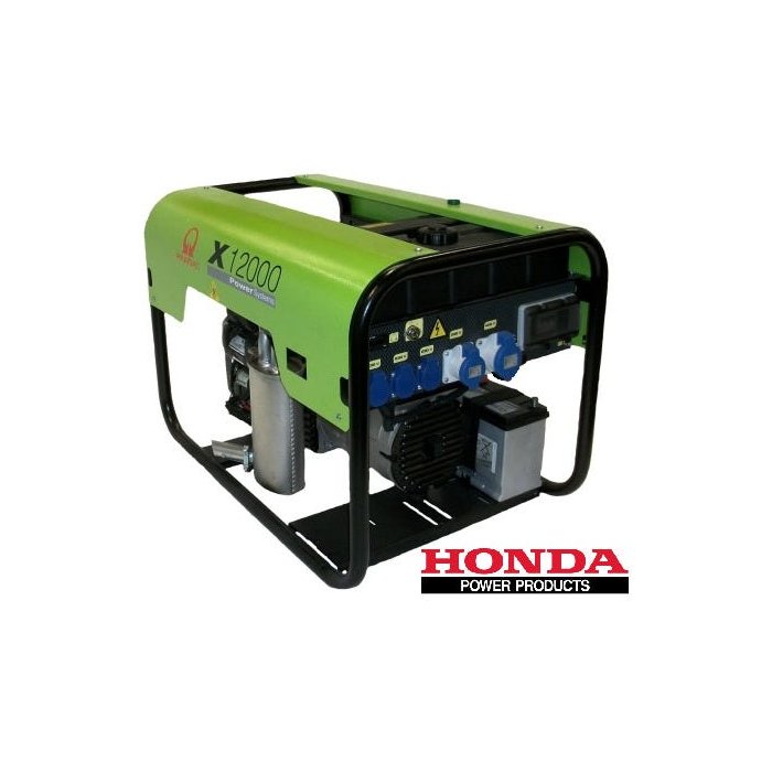 GRUPO GERADOR PRAMAC HONDA X14000 TRIFÀSICO 14.000W 127/220V Referência: PX123PHB001 Modelo: X14000 TRI Uso: Profissional Marca:PRAMAC País de origem: ESPANHA Potência: 11.700W / 14.000W Voltagem: 110/220V Acionamento: Gasolina Tanque de Combustível: 30 Litros Dimensões CxLxA: 96x64x67 cm Peso: 151 Kg Notas:Gasolina , motor Honda GX630 , refrigerado a ar , partida elétrica , trifásico , sem escovas , frequência 60 Hz , carregador de baterias 12volts