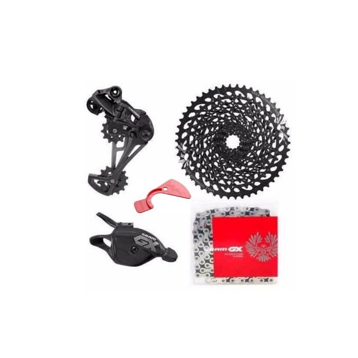 Seja bem vindo a Cerrado Bike Shop- Nossos produtos estão disponíveis em estoque, postagem em até 24 horas.- Produto original com garantia - Produto de origem nacional com numero de série- Enviado nas caixas originaisConteúdo- 1 x cassete SRAM XG-1275 10-50 t- 1 x desviador traseiro SRAM GX Eagle tipo 3.0 1x12 velocidades- 1 x shifter de 12 velocidades SRAM GX Eagle, direito- 1 x corrente SRAM PC GX Eagle- incl. link mestre- incl. cabo do passadorEspecificações - Cassete:Aplicação: Trilha, Endur