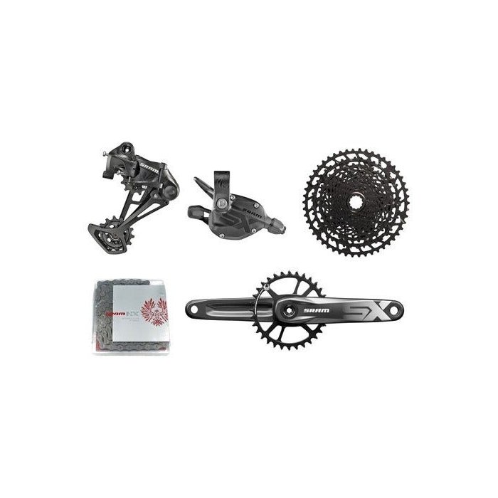 - 1 Pedivela Sram SX Eagle DUB em alumínio com coroa de 32 dentes em aço e braços de 175mm (1000 gramas)