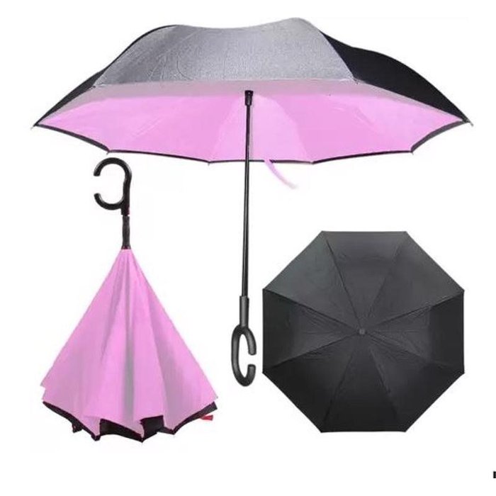Guarda Chuva Invertido Com Cabo Curvo Emborrachado Duplo Tecido Estampado 120cm X 8K O guarda chuva invertido possui um mecanismo ao contrário, assim sendo mais fácil a entrada em carros e estabelecimentos nos dias chuvosos. Também facilita a secagem e com seu cabo curvo, permite o manuseio de outros objetos, como celularesm bolsas e sacolas. Características: - Duplo Tecido - Cabo Curvo - Facilita a entrada em carros sem se melhor - Rápida Secagem Dados Técnicos: Material: Duplo Tecido Pongee Material Cabo: Emborrachado Modelo: Invertido Tamanho: 120cm x 8k Cor: Estampas Variadas Referência: I2090E Conteúdo da Embalagem: 01un Guarda Chuva Invertido Estampado Com Cabo Curvo Emborrachado Duplo Tecido 120cm X 18KOBS: As estampas vão de acordo com a disponibilidade de estoque