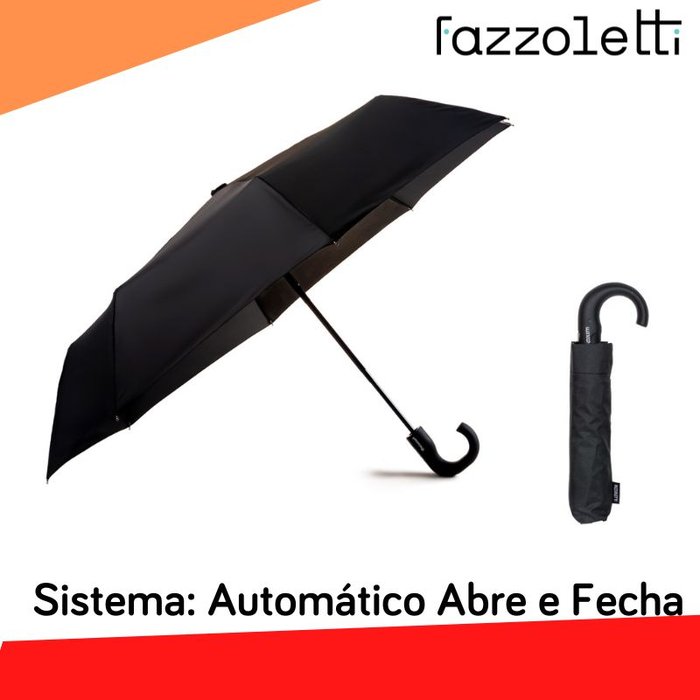 Guarda Chuva Sombrinha Cabo Curvo Abre e Fecha Automatico 207 Fazzoletti Preto