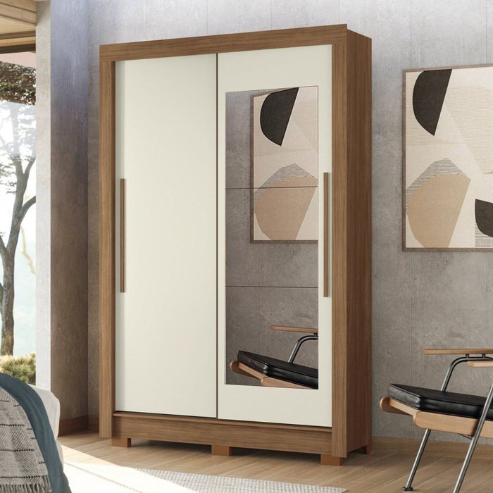 Guarda-roupa 02 Portas Correr 02 Gavetas com Espelho Mdp Lapa Jabotá/Areia