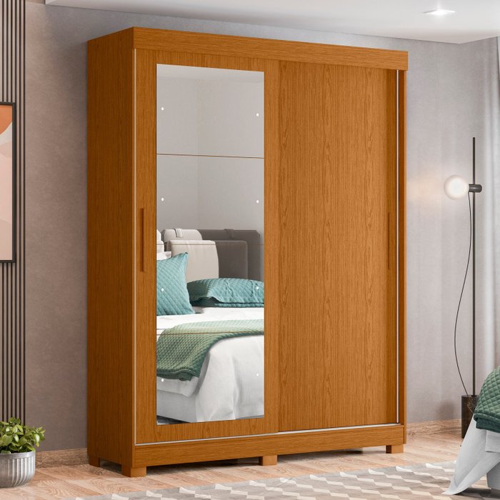 • Guarda-roupa com espelho: o guarda roupa com espelho, além de funcional (afinal, é 2 em 1 e você não precisa adquirir um espelho), tende a dar uma ideia maior de espaço, dando amplitude ao ambiente.