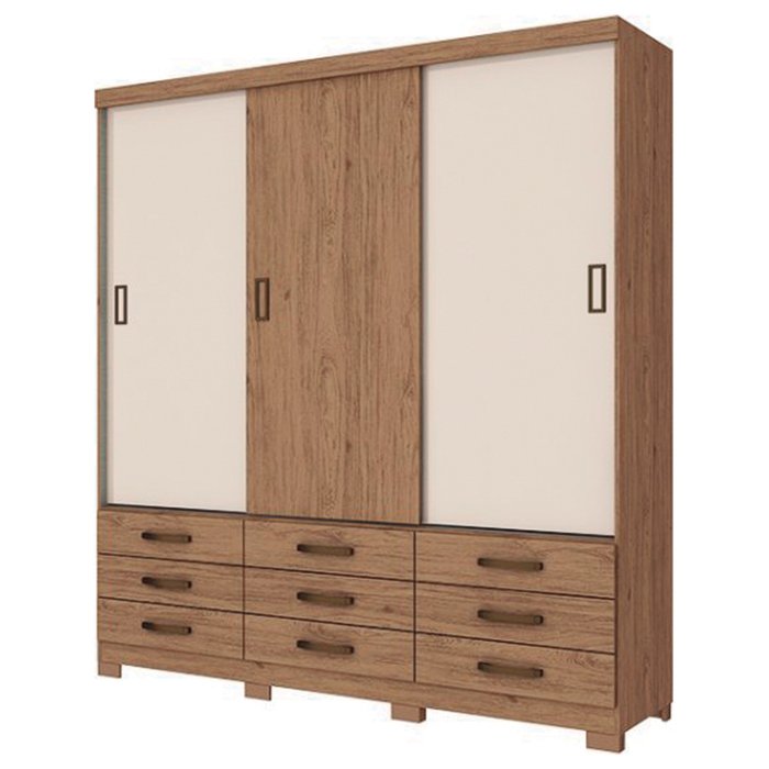 Guarda Roupa 03 Portas de Correr e 09 Gavetas H02 Ipê Rústico/Off White - Mpozenato