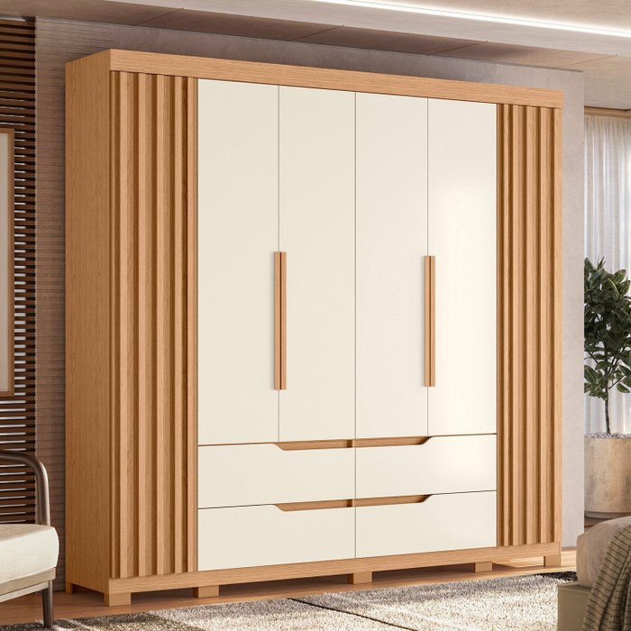 Guarda-roupa 06 Portas e 04 Gavetas Doble Casal Freijó/Off White