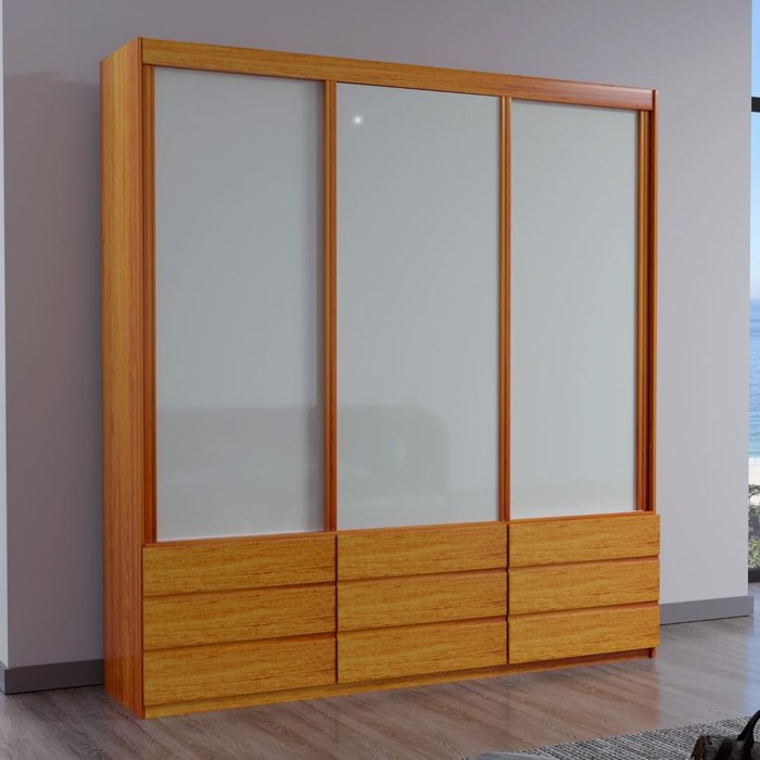 Guarda-roupa 100% Mdf 3 Portas e 9 Gavetas Eco 07 Bom Pastor Naturalle/Off White