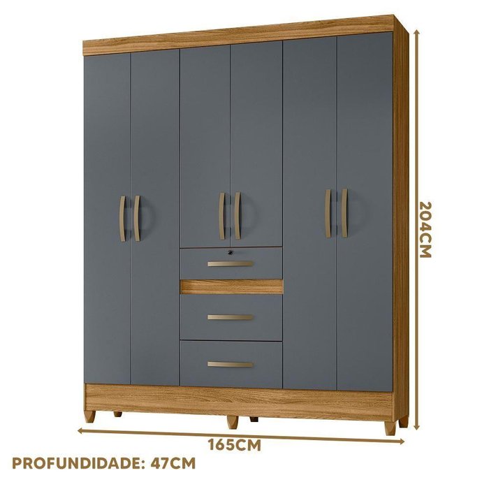Guarda Roupa 165 Cm 6 Portas 3 Gavetas Casal Freijó Cinza Ivo Shop Jm
