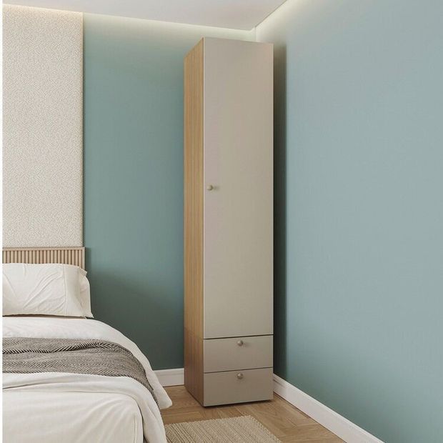Guarda-Roupa 2 Módulos 1 Porta 3 Prateleiras 2 Gavetas Frame CabeCasa MadeiraOriginals Acácia/Arenas