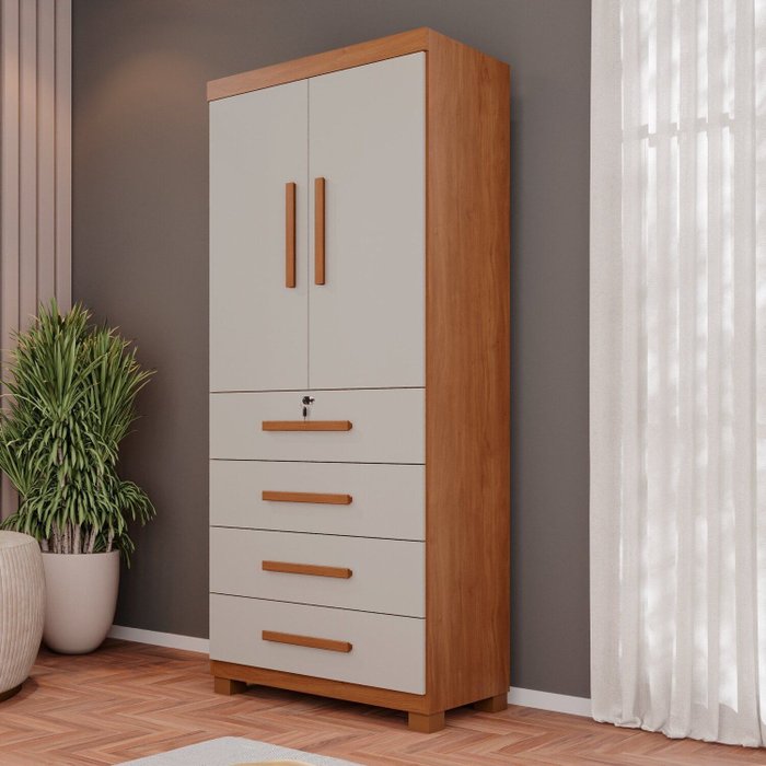 Guarda-roupa 2 Portas 4 Gavetas Ilhéus Espresso Móveis Cinamomo/Off White