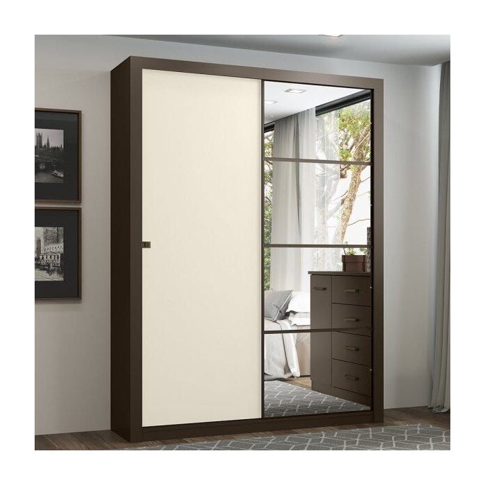 O Roupeiro Alegro une design, sofisticação e funcionalidade, entre os diferenciais destacam-se a excelente distribuição interna, trilho inferior em alumínio, porta lateral com puxador cromado, 3 Gavetas internas, porta central com espelhos, espaço para roupas longas e Portas com perfis alinhadores de metal.