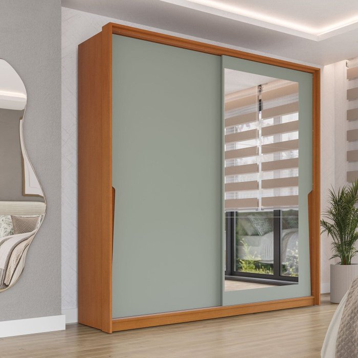 O guarda-roupa 2 portas de correr 2 gavetas Porto com espelho, da Politorno Móveis, combina modernidade, elegância e funcionalidade. Com 200 cm de altura, 180,1 cm de largura e 44,5 cm de profundidade, é ideal para quem busca otimizar espaços sem abrir mão da sofisticação. Suas portas de correr garantem praticidade no dia a dia, enquanto os espelhos agregam um toque sofisticado e ampliam o ambiente. Fabricado em MDP/MDF, possui acabamento em pintura UV e FF, garantindo durabilidade e resistência. As gavetas com corrediças telescópicas proporcionam um deslizamento suave, e os puxadores embutidos conferem um design clean e moderno. Perfeito para um quarto elegante e bem organizado.