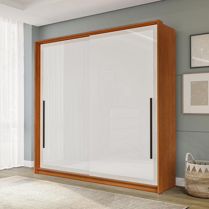 Guarda Roupa 2 Portas de Correr 2 Gavetas Móveis Valência Freijó/Branco