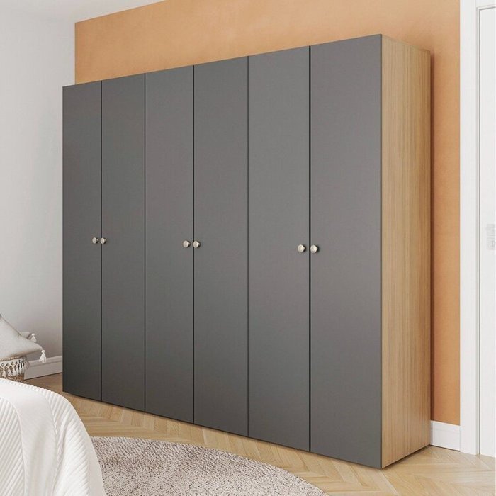 Guarda-Roupa 3 Módulos 6 Portas 9 Prateleiras Frame CabeCasa MadeiraOriginals Acácia/Grafite