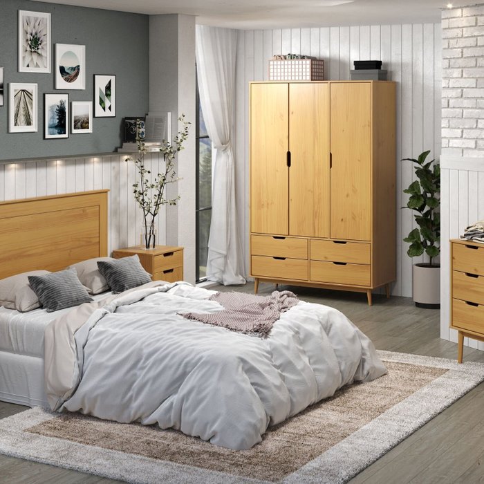Guarda-roupa 3 Portas 4 Gavetas Nórdica Yescasa Roble