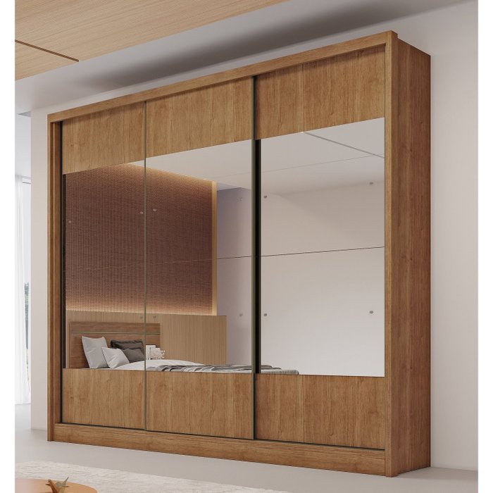 Guarda Roupa 3 Portas 6 Gavetas com 3 Kit Espelho Malta Novo Horizonte Cumaru