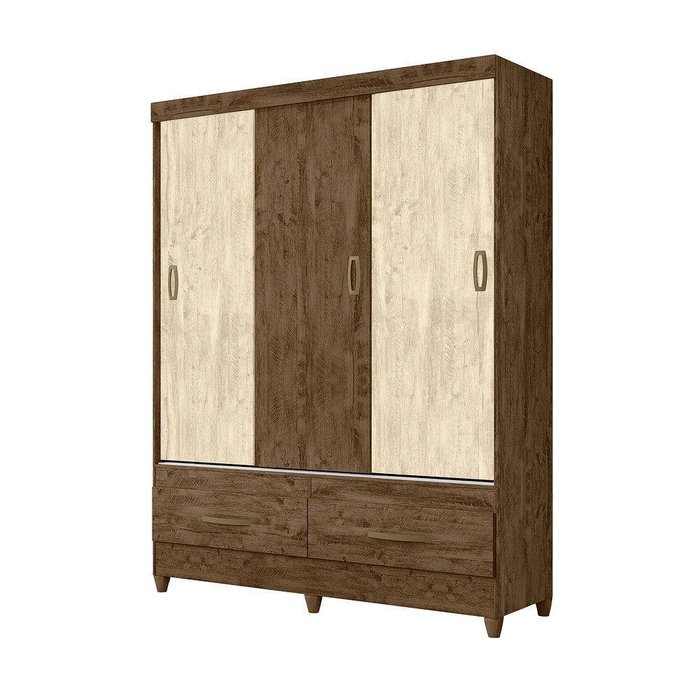 Guarda Roupa 3 Portas Deslizantes New Suécia Castanho Wood Avelã Wood Flex 901381 Moval