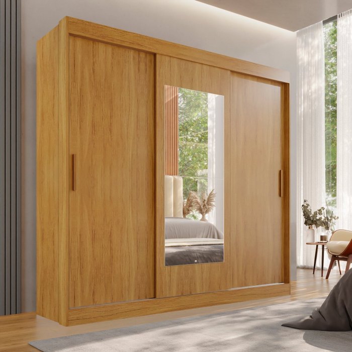 Guarda-roupa 4 Gavetas 3 Portas de Correr com Espelho Porto Cinamomo