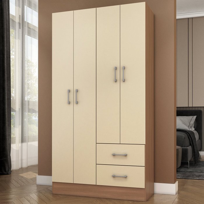 Guarda-roupa 4 Portas 2 Gavetas Manchester/Champagne