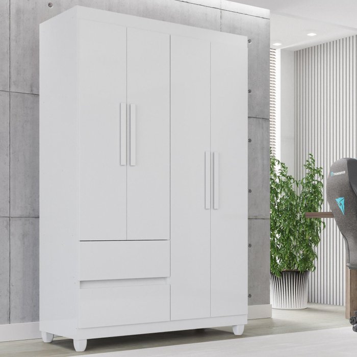 Guarda-roupa 4 Portas 2 Gavetas Dubai Plus Branco Neve