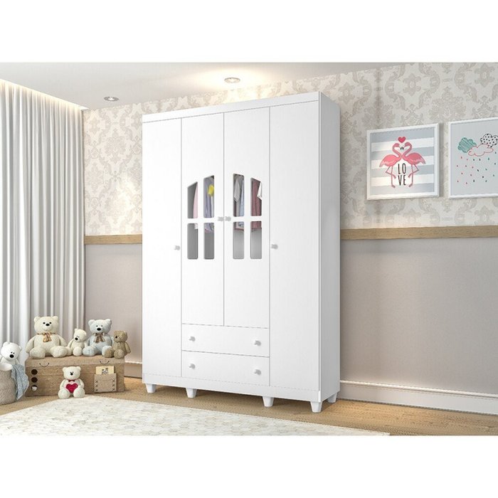 Guarda-Roupa 4 Portas 2 Gavetas Julia Branco