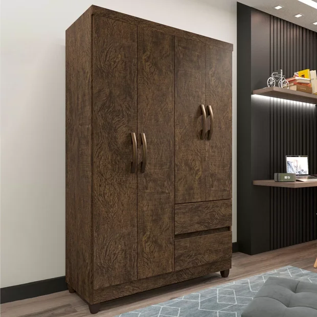 Guarda-Roupa 4 Portas 2 Gavetas Lisboa Imop Móveis Wengue Naturale