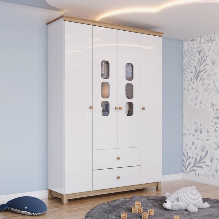 Guarda-Roupa 4 Portas 2 Gavetas Sophia Espresso Móveis Branco e Jequitibá HP