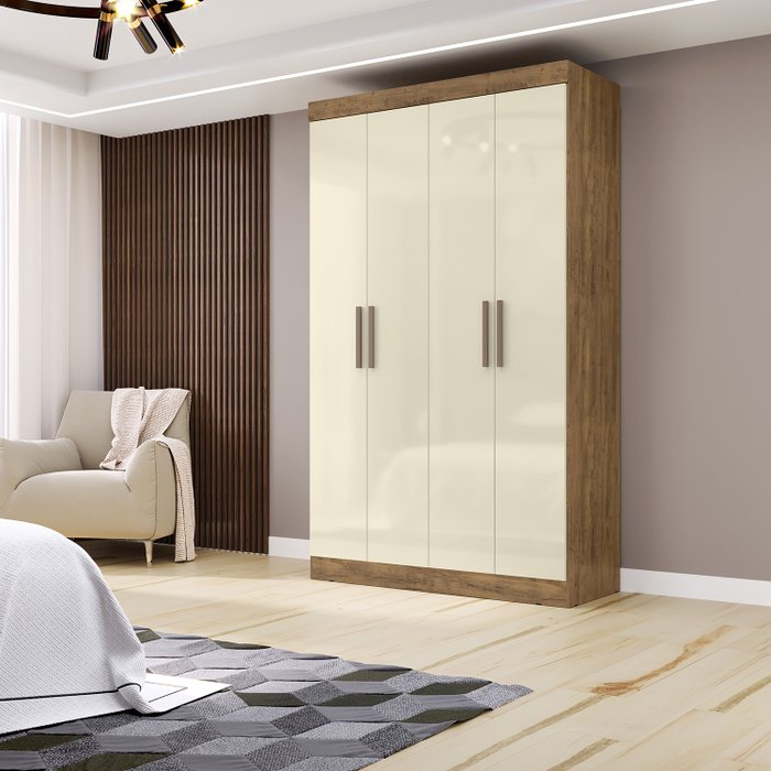 Guarda Roupa 4 Portas 2 Gavetas Total Mdp Paris Espresso Móveis Cinamomo/Off White