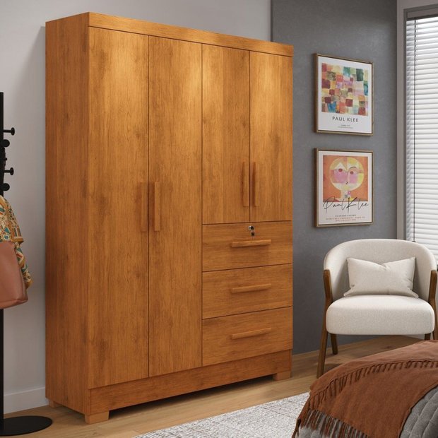 Guarda-roupa 4 Portas 3 Gavetas Amanda Yescasa Nature