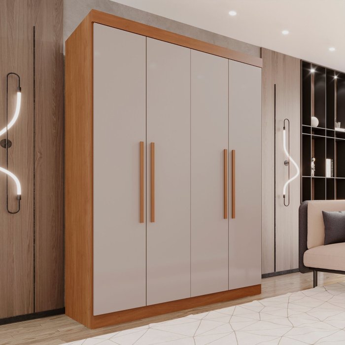 Guarda-roupa 4 Portas 3 Gavetas New Malibu Espresso Móveis Cinamomo/Off White