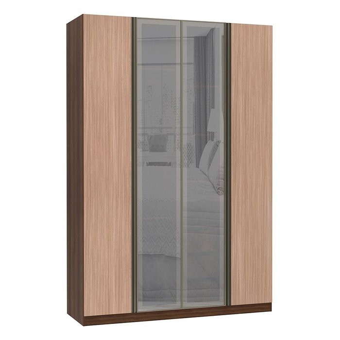 Guarda Roupa 4 Portas Alumínio Inox com Vidro Reflecta Prata 3 Gavetas 159 Cm Prime Luciane Móveis Nogueira Dourado com Cumaru