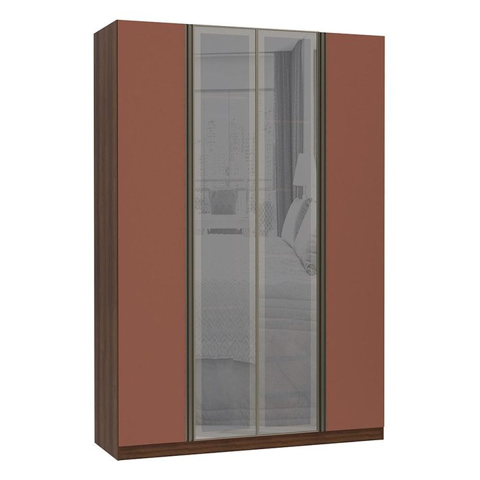 Guarda Roupa 4 Portas Alumínio Inox com Vidro Reflecta Prata 3 Gavetas 159 Cm Prime Luciane Móveis Nogueira Dourado com Gaia