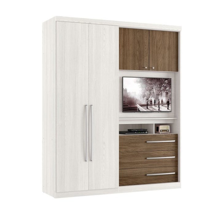 Com espaço exclusivo para TV de até 32 e nichos auxiliares, possui ainda 3 gavetas grandes externas com corrediças metálicas, e um interno muito atrativo com cabideiro, prateleiras e o mais importante: com dimensões que possam ser colocadas em pequenos espaços.