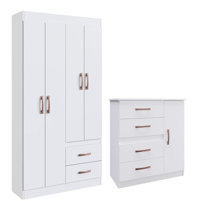 Guarda Roupa 4 Portas + Cômoda Rosario Branco