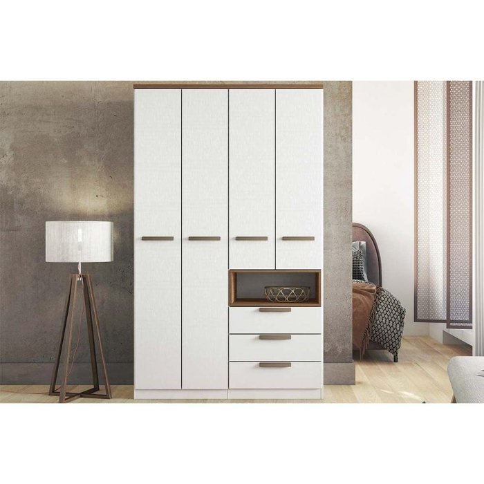 Guarda Roupa Solteiro New Conect 4.3 4 Portas e 3 Gavetas Branco/Jatoba - Santos Andirá