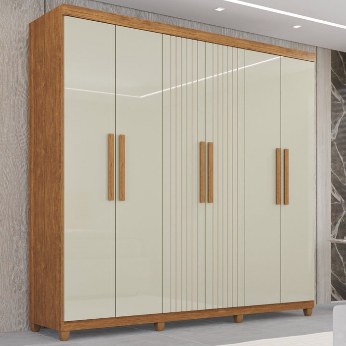Guarda-roupa 6 Portas 2 Gavetas Portugal Frison Cinamomo/Off-White