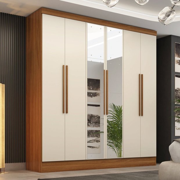 Guarda-roupa 6 Portas 3 Gavetas com Espelhos Lisboa Espresso Móveis Cinamomo/Off White