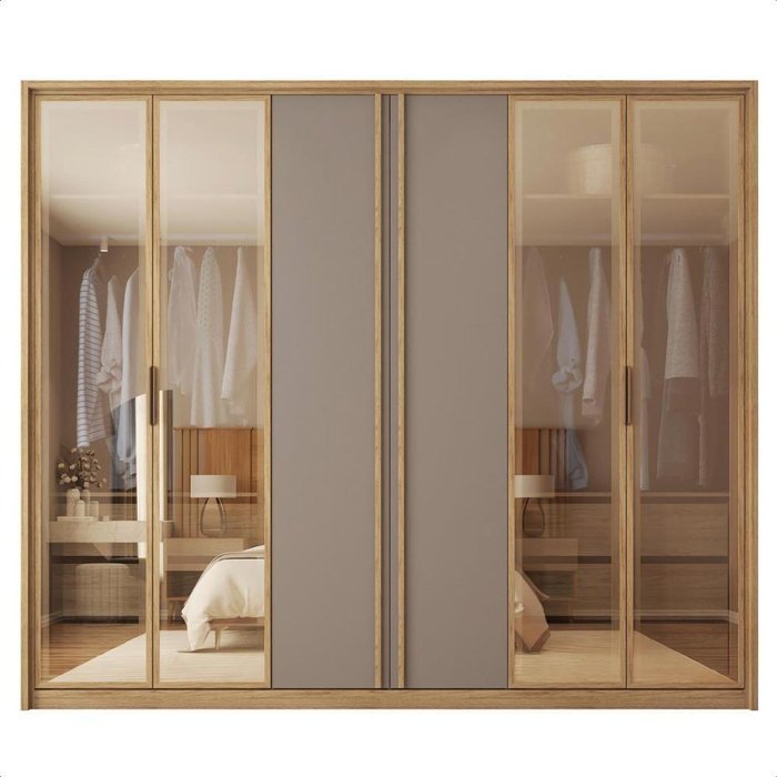 Guarda Roupa 6 Portas 4 Espelhos Marrom Diamond Caemmun